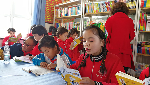 在明亮的圖書館內(nèi),孩子們盡情遨游書?!,F(xiàn)場嘉賓也與孩子們分享閱讀的感悟和樂趣。阿瓦提鄉(xiāng)鎮(zhèn)領(lǐng)導表示,康芝紅臉蛋基金與志愿者們的無私捐贈,將溫暖每一位孩子的心靈,使孩子們收獲知識和力量。