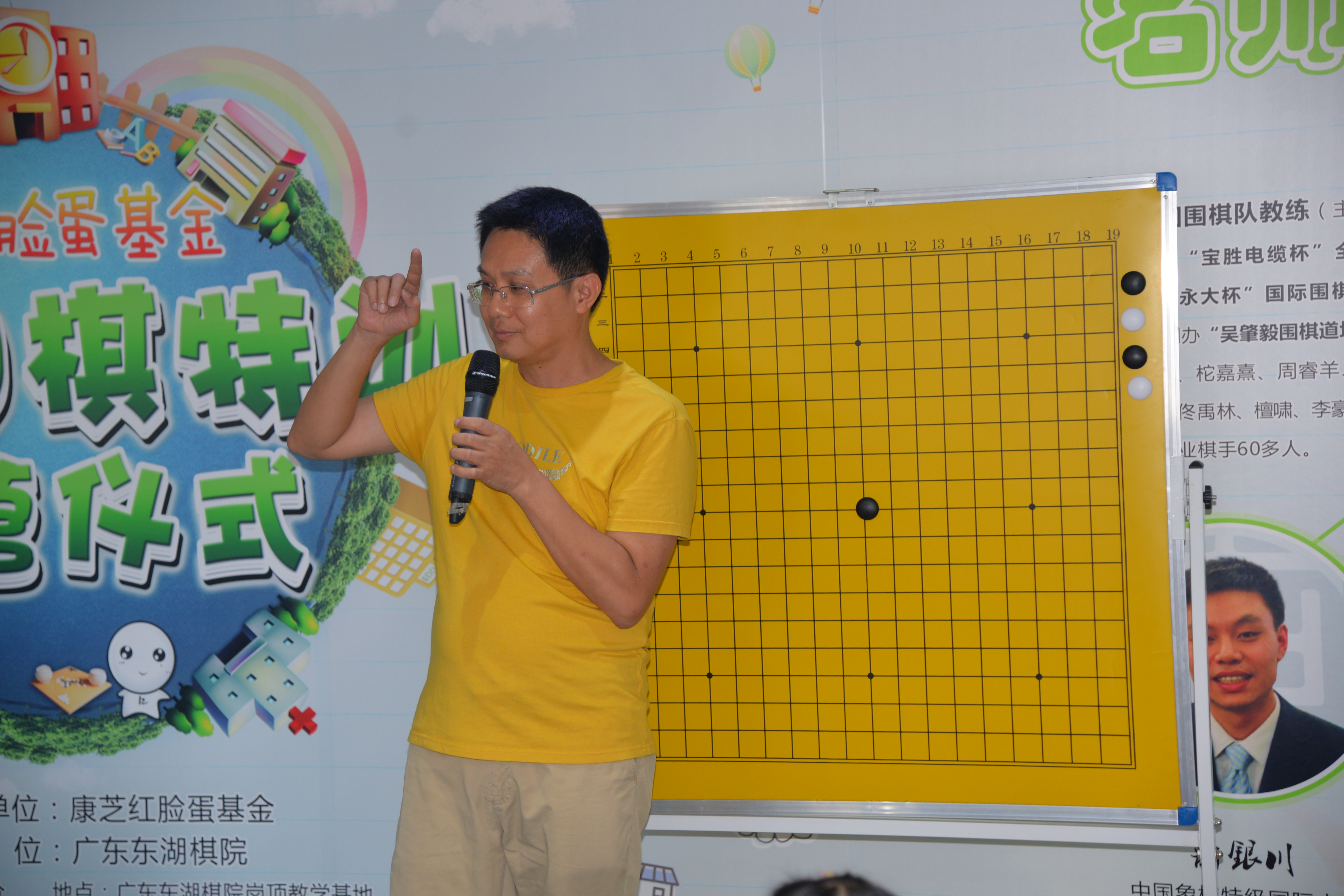 7月10日,由康芝紅臉蛋基金發(fā)起主辦、廣東東湖棋院承辦的“康芝少兒圍棋特訓(xùn)營”開營儀式在廣州舉行。廣東省棋類協(xié)會常務(wù)副主席陳志剛先生,康芝藥業(yè)品牌管理部總監(jiān)方康莉女士,原任中國圍棋隊(duì)教練、圍棋九段大師吳肇毅先生,廣東東湖棋院運(yùn)營部主任周智滔先生,廣東東湖棋院圍棋教學(xué)部主任甘穎斌先生等出席了開營儀式。此前通過面試及測試篩選的48名小學(xué)員,也在家長的陪同下來到現(xiàn)場。