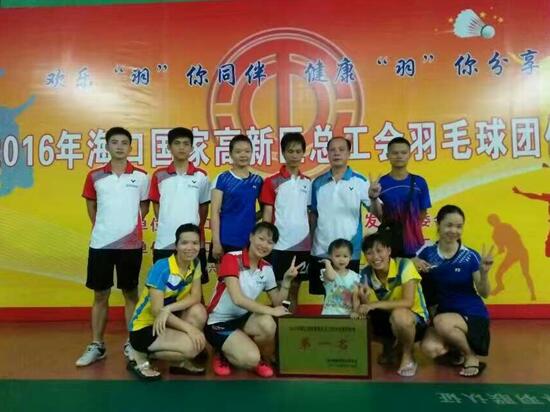 8月20日至28日,由??谑袊腋咝聟^(qū)管委會主辦,??趪腋咝聟^(qū)總工會承辦的“2016年??趪腋咝聟^(qū)總工會羽毛球團體賽”在海口舉行??抵ニ帢I(yè)羽毛球隊在各位成員的共同努力下,積極進取,勇于爭先,獲得比賽第一名的佳績。