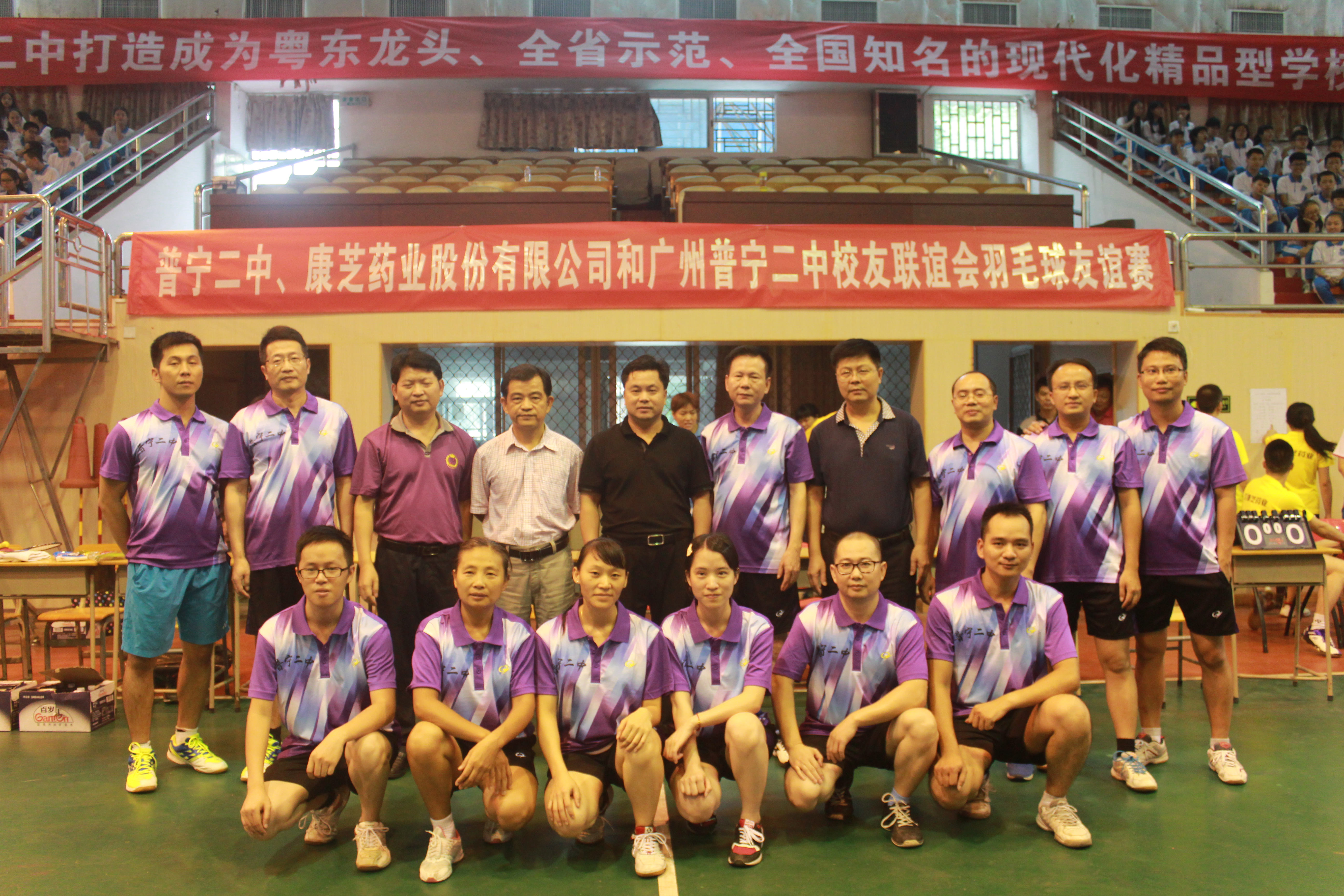 10月8日下午,康芝藥業(yè)董事長洪江游先生帶領(lǐng)康芝羽毛球俱樂部成員,風(fēng)塵仆仆來到其母校普寧二中參加羽毛球友誼賽。當(dāng)天,以洪江游董事長為首的康芝羽毛球俱樂部,和普寧二中廣州校友聯(lián)誼會秘書長羅勇強(qiáng)先生等校友代表組成了聯(lián)合代表隊(duì),與普寧二中副校長陳偉旭先生率領(lǐng)的二中代表隊(duì)進(jìn)行了一場精彩對決。