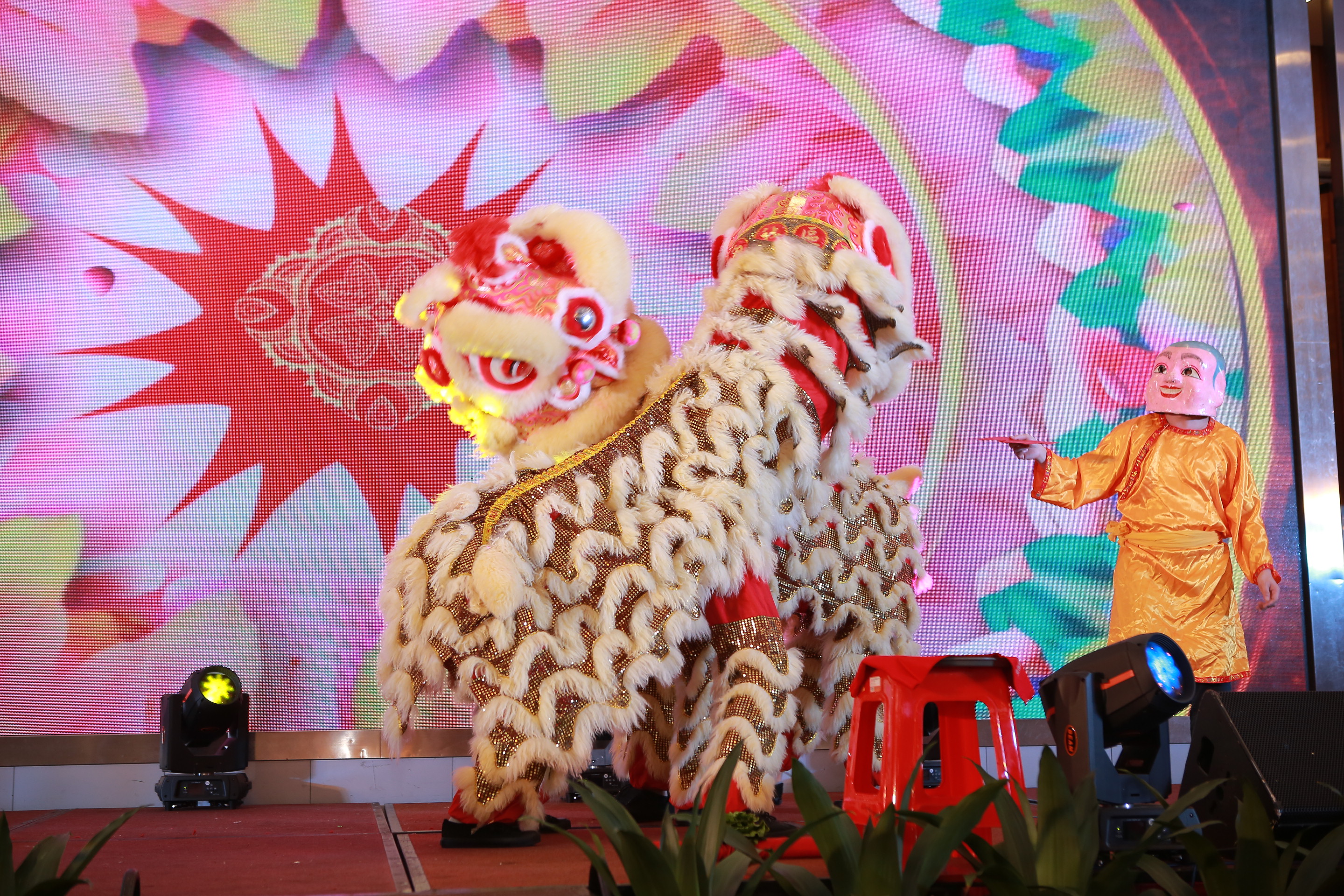 在吉祥喜慶的舞獅點(diǎn)睛、舞獅采青節(jié)目中,聯(lián)歡晚會(huì)拉開了序幕??蓯鄣膯T工寶寶們化身吉祥金雞,和集團(tuán)領(lǐng)導(dǎo)、公司經(jīng)營(yíng)班子領(lǐng)導(dǎo)手牽手,一同登臺(tái)向滿堂賓客送上新春祝福。