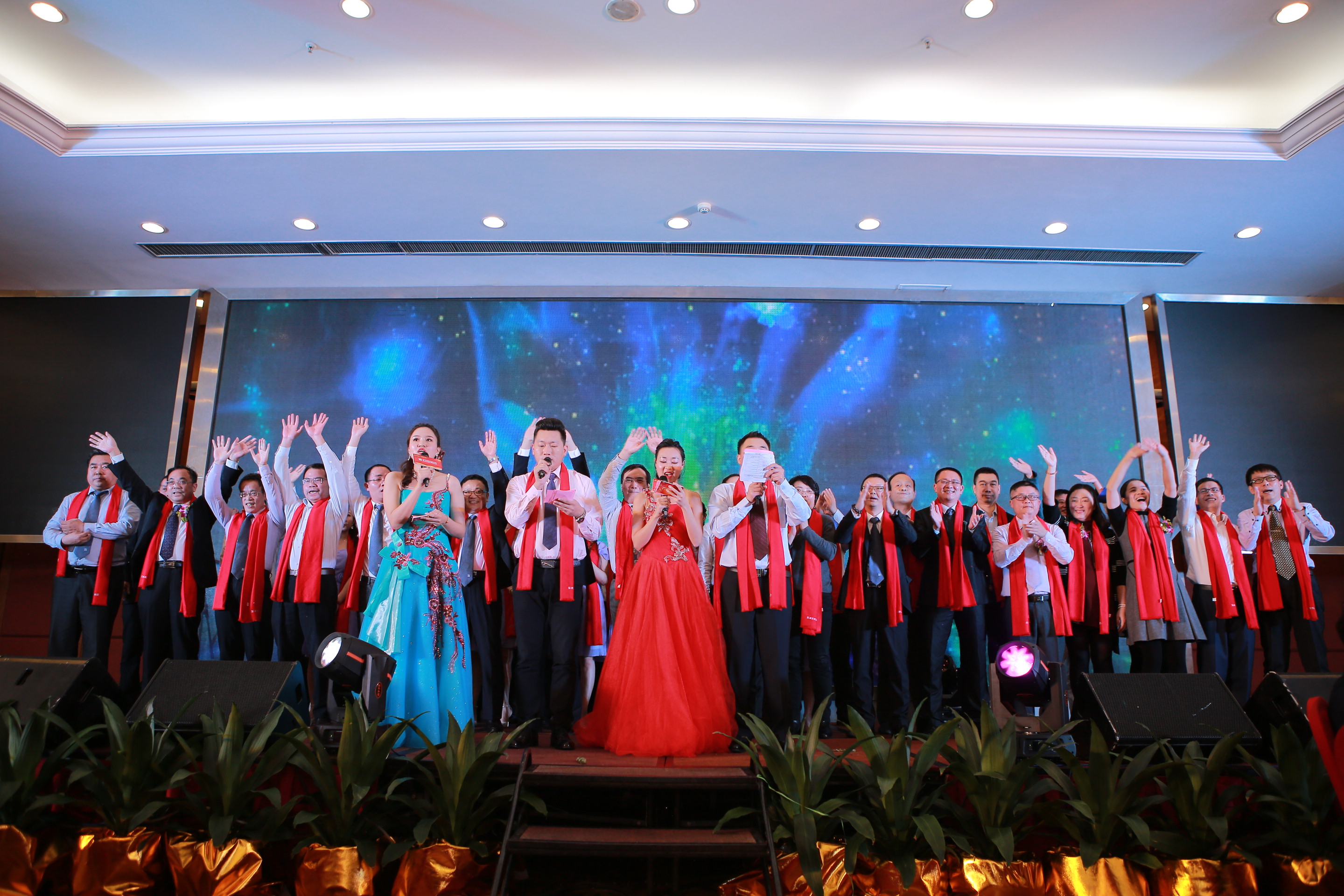 晚會(huì)現(xiàn)場(chǎng)驚喜不斷,不僅有康芝人精心準(zhǔn)備的歌舞表演、美酒佳肴,和大家喜聞樂見的抽獎(jiǎng)環(huán)節(jié),還有高管團(tuán)隊(duì)帶來的精彩演出。一首由洪董親自選曲,并攜手員工家屬領(lǐng)銜演唱的歌曲——《國(guó)家》,打動(dòng)了現(xiàn)場(chǎng)的每個(gè)人。說起最初選曲的初衷,洪董表示,正因?yàn)橛袊?guó)家的安定強(qiáng)盛,康芝家人們才能擁有更加美好的生活。而員工及其家庭的幸福美滿,是康芝藥業(yè)奮斗的目標(biāo)和動(dòng)力,是康芝藥業(yè)發(fā)展壯大的堅(jiān)定基礎(chǔ)。