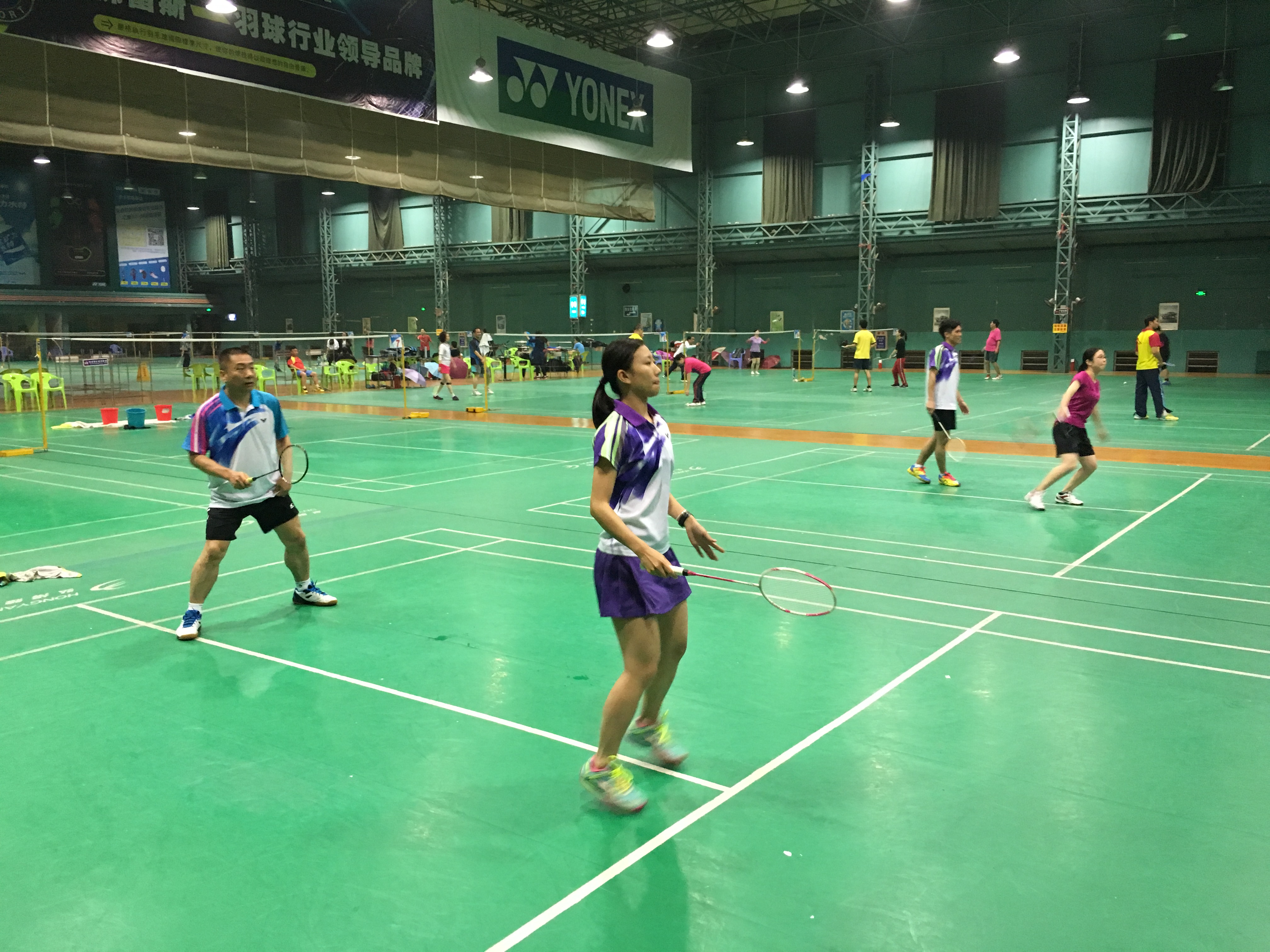 在激烈與歡快的氛圍中,本次友誼賽拉開序幕。比賽分兩個(gè)場地同時(shí)進(jìn)行。在短暫的熱身之后,參賽運(yùn)動(dòng)員們便全神貫注地投入到比賽中。網(wǎng)前的魚躍救球、后場的騰空扣殺等精彩動(dòng)作在賽場上頻頻出現(xiàn),奪人眼球,現(xiàn)場也不時(shí)響起熱烈的掌聲。