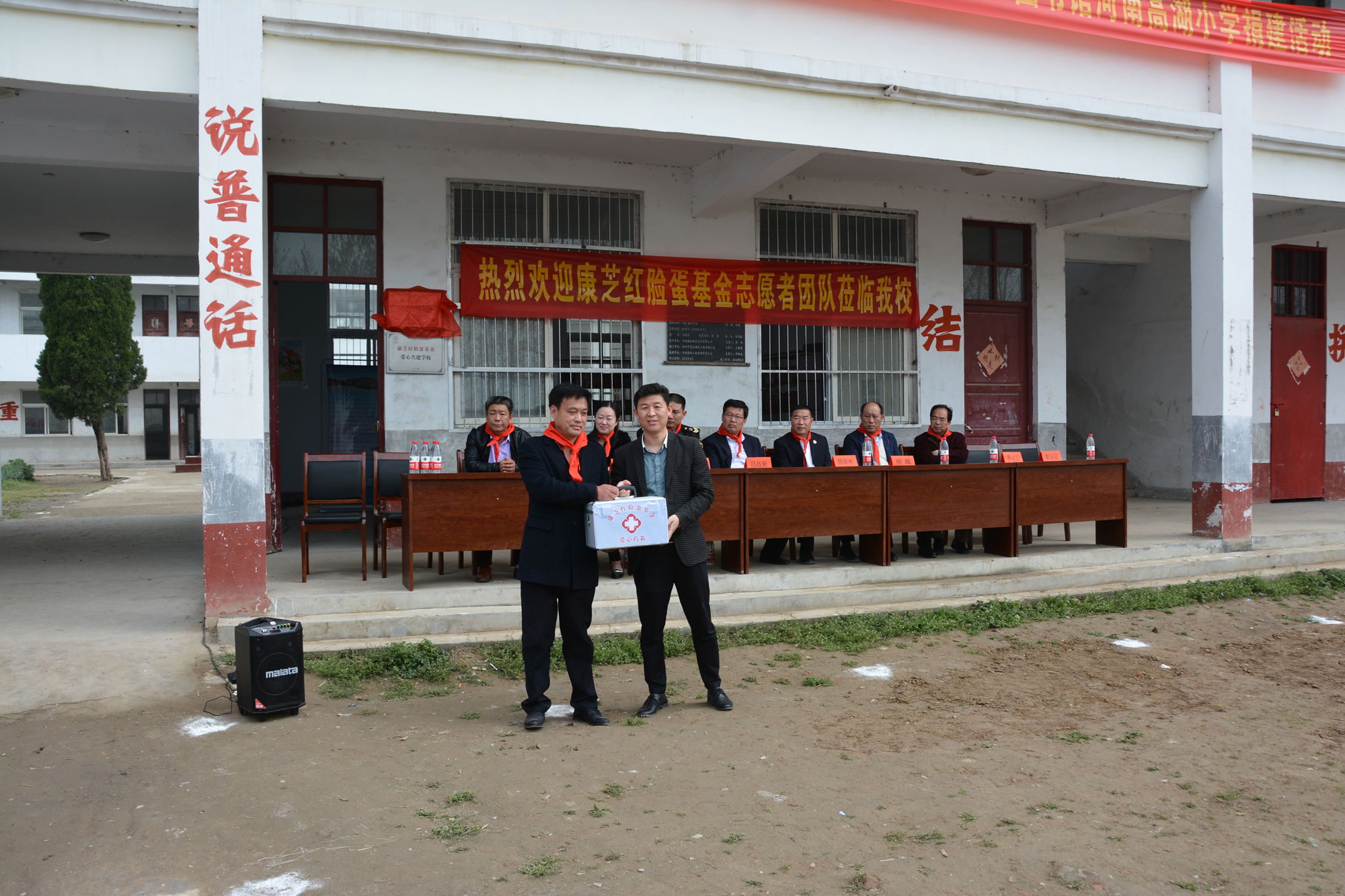 當(dāng)天,康芝紅臉蛋基金攜手康芝藥業(yè)河南周口合作伙伴愛心探訪高湖小學(xué),并舉行紅臉蛋圖書館捐建儀式。河南周口沈丘縣檢察院周威檢察長、付井鎮(zhèn)胡東輝黨委書記、沈丘縣教育局紀(jì)檢組楊暉組長、付井鎮(zhèn)呂戰(zhàn)新鎮(zhèn)長、沈丘縣藥監(jiān)局劉建偉劉局等領(lǐng)導(dǎo),與康芝集團(tuán)品牌中心總監(jiān)方康莉、康芝藥業(yè)OTC事業(yè)部河南高級大區(qū)經(jīng)理王興隆、康芝藥業(yè)河南周口合作伙伴高曉偉等,以及高湖小學(xué)全體師生一同出席了捐贈儀式。