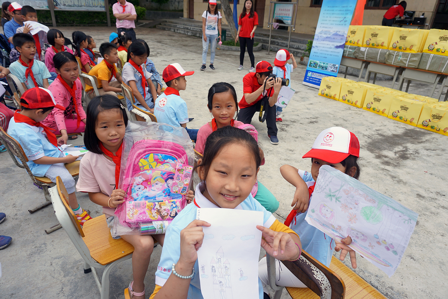 現(xiàn)場(chǎng),志愿者還為學(xué)校的孩子們派送了各類愛心物資,有文具、水杯,以及由中山愛護(hù)捐贈(zèng)的嬰童洗護(hù)用品??抵ゼt臉蛋基金還為學(xué)校捐贈(zèng)了一批圖書,讓書籍陪伴孩子們快樂成長(zhǎng)。當(dāng)琳瑯滿目的愛心禮物發(fā)放到孩子們手中,一張張純樸稚嫩的笑臉也在校園里開心地綻放。