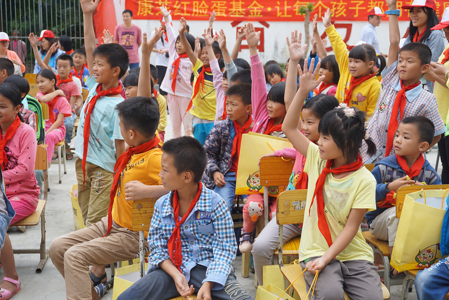 愛心活動(dòng)在肇慶高要區(qū)水南鎮(zhèn)六聯(lián)小學(xué)舉行,康芝寶寶們此次“手牽手獻(xiàn)愛心”的對(duì)象,是來自水南中心小學(xué)下屬對(duì)口小學(xué)和六聯(lián)小學(xué)的孩子們。