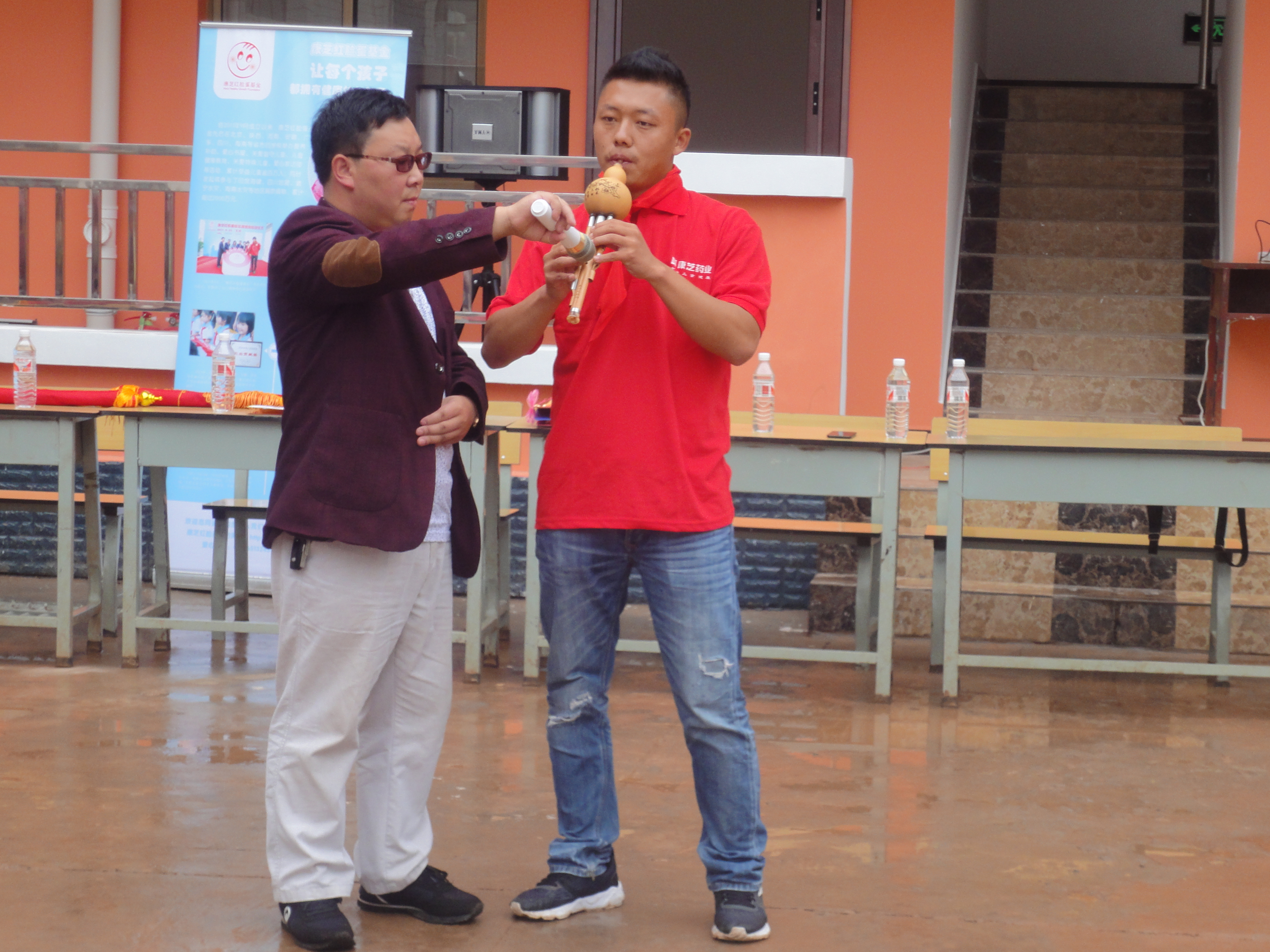 康芝藥業(yè)云南省區(qū)經(jīng)理袁代松、康芝藥業(yè)云南合作伙伴曹喜勝,和來自云南銘俊藥業(yè)有限責任公司、云南彝頌文化傳播有限公司、富源縣旺家樂健康藥房的一眾愛心人士,以及云南曲靖市富源縣后所鎮(zhèn)中心學校肖松老師、阿依諾小學全體師生一同出席了捐贈儀式。