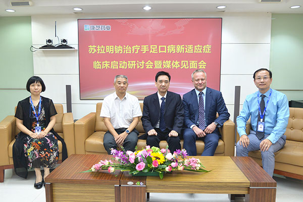9月19日,專注兒童大健康的上市公司康芝藥業(yè)召開“蘇拉明鈉治療手足口病新適應(yīng)癥臨床啟動研討會暨媒體見面會”,國際知名RNA病毒學(xué)專家、蘇拉明鈉治療手足口病新適應(yīng)癥發(fā)明人RalfAltmeyer教授,廣州兒童醫(yī)院楊思達(dá)主任,康芝藥業(yè)副董事長兼副總裁洪麗萍女士,康芝藥業(yè)首席科學(xué)官辜列先生等來自德中兩國的相關(guān)專家及企業(yè)代表共同參加了研討會,共同探討推進(jìn)蘇拉明鈉新適應(yīng)癥的研發(fā)。