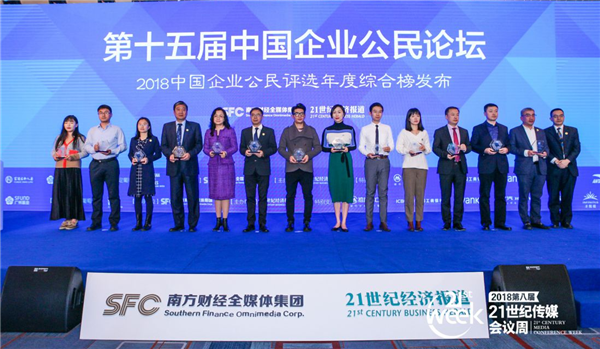 中國企業(yè)公民論壇暨中國最佳企業(yè)公民評選由南方財經(jīng)全媒體集團、《21世紀經(jīng)濟報道》舉辦,是國內歷史最悠久和最為權威的企業(yè)社會責任獎項評選活動之一,本屆論壇的主題是構建商業(yè)向善的長效機制,會上多個企業(yè)品牌針對企業(yè)的社會責任和公益的可持續(xù)發(fā)展展開了熱烈的探討和交流??抵ニ帢I(yè)憑借在多年以來在企業(yè)社會責任領域的出色實踐,在本次活動評選中榮膺“優(yōu)秀企業(yè)公民”獎。