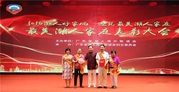 8月24日,廣東省潮人海外聯(lián)誼會(以下簡稱省潮聯(lián))在省委老干部活動中心舉行了以“弘揚(yáng)潮人好家風(fēng),遇見最美潮人家庭”為主題的“最美潮人家庭”頒獎大會,隆重表彰了洪江游等“十大最美潮人家庭”和丁劍山等17個“最美潮人家庭”。廣東省委原副書記、省潮聯(lián)會長、海南省潮商經(jīng)濟(jì)促進(jìn)會榮譽(yù)會長蔡東士,原廣州軍區(qū)副政委張汝成中將,廣東省政協(xié)副主席黃武,國際潮團(tuán)總會執(zhí)行主席陳幼南博士,第二十一屆國際潮團(tuán)聯(lián)誼年會籌委會主席、海南省潮商經(jīng)濟(jì)促進(jìn)會會長、康芝藥業(yè)董事長洪江游,廣東省婦聯(lián)巡視員劉蘭妮,家庭和兒童工作部部長胡梯,廣東省僑聯(lián)聯(lián)誼聯(lián)絡(luò)部副調(diào)研員彭國華等領(lǐng)導(dǎo)出席大會;此外,還有來自潮汕四市的婦聯(lián)和駐穗辦事處的負(fù)責(zé)人、省潮聯(lián)領(lǐng)導(dǎo)及下屬各專委會、各校友會團(tuán)體單位、獲獎家庭代表等約200人參加了活動。表彰大會簡單隆重,氣氛熱烈,場面感人,圓滿順利。大會由省潮聯(lián)副會長兼秘書長范思斌主持。