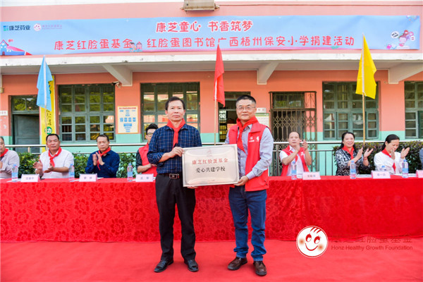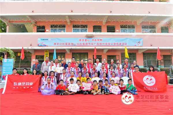 2019年11月11日,康芝紅臉蛋基金攜手康芝藥業(yè)梧州代理商團(tuán)隊(duì)及當(dāng)?shù)卦\所前往廣西省梧州市萬秀區(qū)夏郢鎮(zhèn)保安小學(xué)開展愛心探訪及捐贈活動,第21所康芝紅臉蛋圖書館落戶梧州。