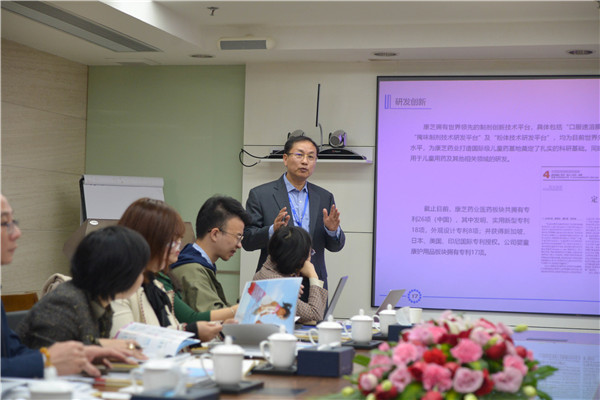 近年來(lái),隨著兒童健康越來(lái)越受關(guān)注,醫(yī)療投入加大,以及系列鼓勵(lì)兒童藥創(chuàng)新研發(fā)政策的支持,業(yè)內(nèi)認(rèn)為,兒童健康產(chǎn)業(yè)的創(chuàng)新發(fā)展已經(jīng)迎來(lái)最好時(shí)代。預(yù)計(jì)到2020年,兒童大健康產(chǎn)品市場(chǎng)規(guī)?;蜻_(dá)2000多億元。由此,聚焦兒童大健康領(lǐng)域的上市公司備受關(guān)注。日前,作為一家專注兒童大健康的知名上市企業(yè),康芝藥業(yè)(300086.SZ)迎來(lái)了廣東國(guó)健安證券等機(jī)構(gòu)的近20名投資者到訪參觀調(diào)研,康芝藥業(yè)總裁洪江濤、副總裁兼董秘林德新、首席科學(xué)官辜列等高管熱情接待了來(lái)訪投資者,并進(jìn)行了深入細(xì)致的交流。