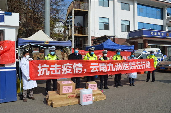 “面對(duì)疫情,全體公安交警不退縮,為守護(hù)人民群眾的平安健康,做出了巨大貢獻(xiàn)。在這次疫情阻擊戰(zhàn)中,全市醫(yī)護(hù)工作者和公安交警成為共同作戰(zhàn)的戰(zhàn)友,沖在疫情一線,成為突擊隊(duì)員,與疫情賽跑,為生命站崗,共同筑起了聯(lián)防聯(lián)控、群防群控的‘銅墻鐵壁’。相信這場(chǎng)戰(zhàn)疫的勝利終將屬于我們!”云南九洲醫(yī)院醫(yī)務(wù)科主任賀希獻(xiàn)說(shuō)這話時(shí),言語(yǔ)中流露著真情。