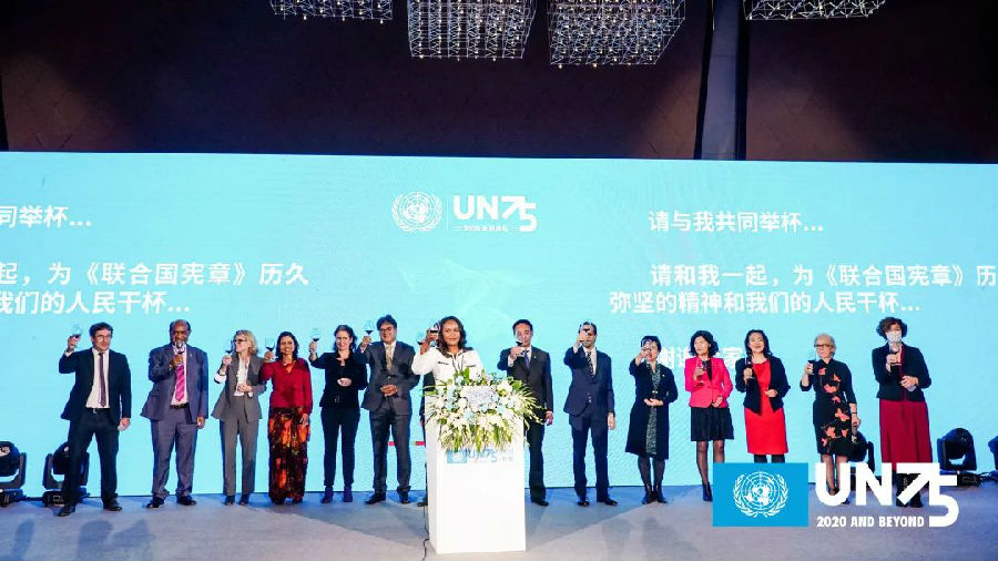 10月30日,由聯(lián)合國(guó)駐華系統(tǒng)主辦,主題為“聯(lián)合國(guó)成立75周年:承前啟后,共創(chuàng)未來(lái)”的聯(lián)合國(guó)日慶祝活動(dòng)在北京隆重舉行,慶?!堵?lián)合國(guó)憲章》簽署生效暨聯(lián)合國(guó)成立75周年。