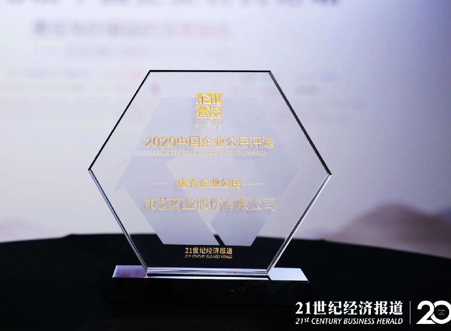 當(dāng)晚,2020年度中國(guó)企業(yè)公民評(píng)選榜單終揭曉,康芝藥業(yè)憑借在抗擊新冠疫情中積極承擔(dān)上市藥企的責(zé)任與擔(dān)當(dāng),獲評(píng)為“年度優(yōu)秀企業(yè)公民”。