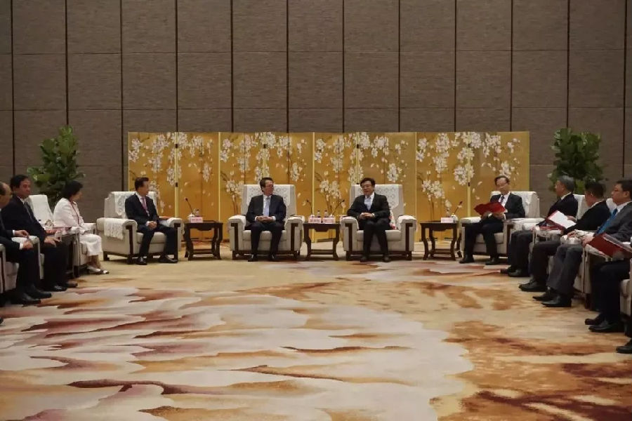 在交流互動(dòng)環(huán)節(jié),康芝藥業(yè)董事長洪江游向馮飛省長和李卓彬副主席介紹:第21屆國際潮團(tuán)聯(lián)誼年會(huì)將會(huì)在海南舉行,屆時(shí)全球知名潮商將齊聚海南共襄盛會(huì),將會(huì)為海南帶來商機(jī)并助推海南自貿(mào)港建設(shè)。