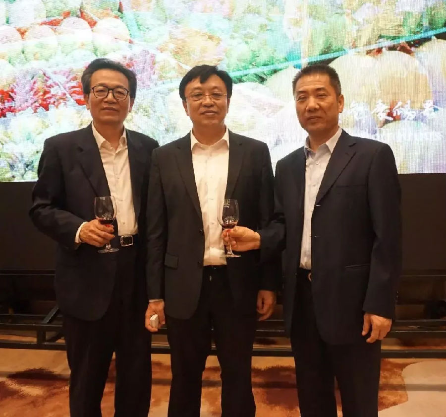 中國僑聯(lián)副主席李卓彬(左)、海南省省長馮飛(中)、康芝藥業(yè)董事長洪江游(右)