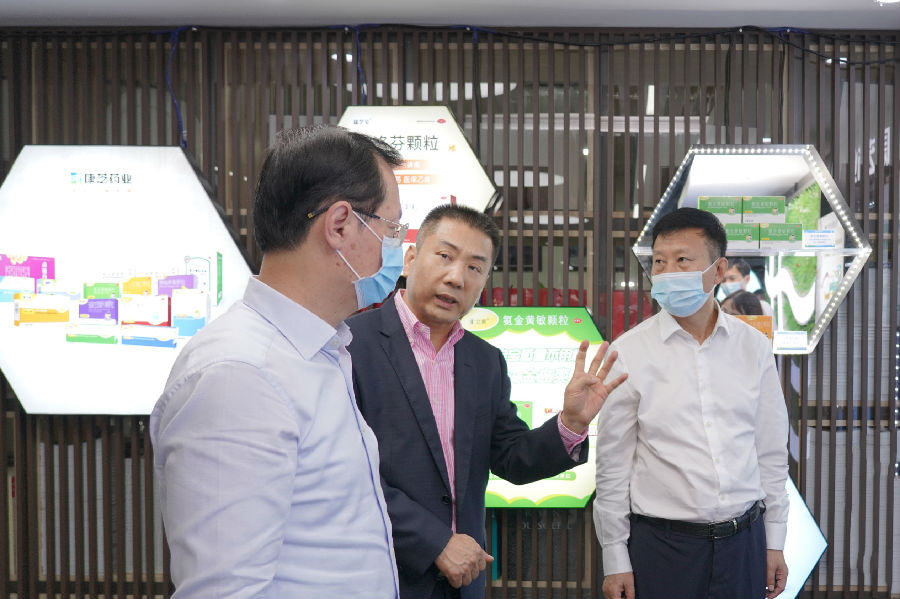 陳綠平副省長一行參觀了康芝集團的文化走廊、集團旗下康芝藥業(yè)和愛護公司的產(chǎn)品展廳,對康芝集團的發(fā)展歷程、戰(zhàn)略布局、業(yè)務板塊、科研實力、企業(yè)文化和公益項目等進行了深入了解和互動交流。