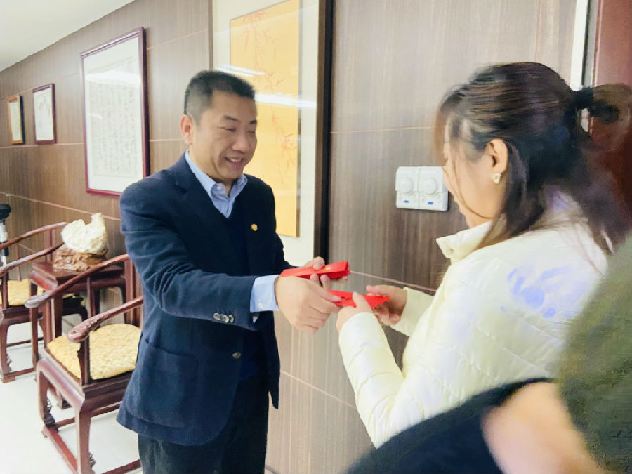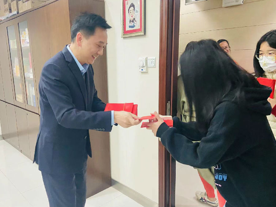 康芝藥業(yè)總裁洪江濤先生代表公司向康芝人親自派發(fā)虎年開工紅包,并致以新春的祝福及節(jié)日的問候,寄托了公司對大家新年工作的美好祝福和期許!