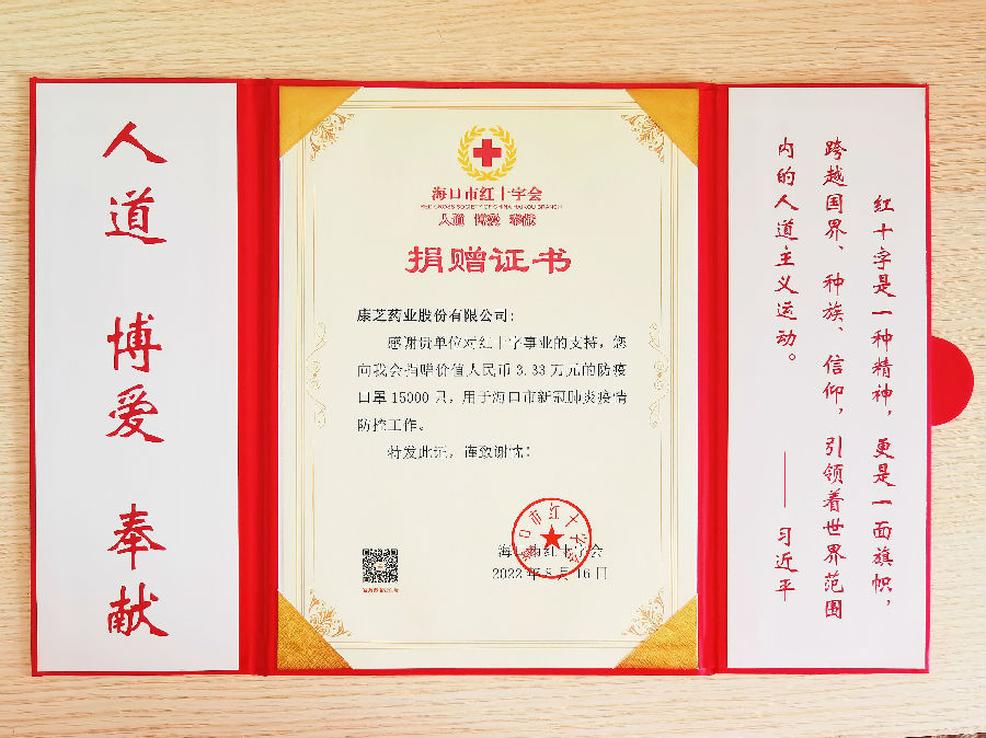 8月16日上午,康芝藥業(yè)向海口市紅十字會(huì)捐贈(zèng)一批愛心防疫口罩,以實(shí)際行動(dòng)助力疫情防控工作。