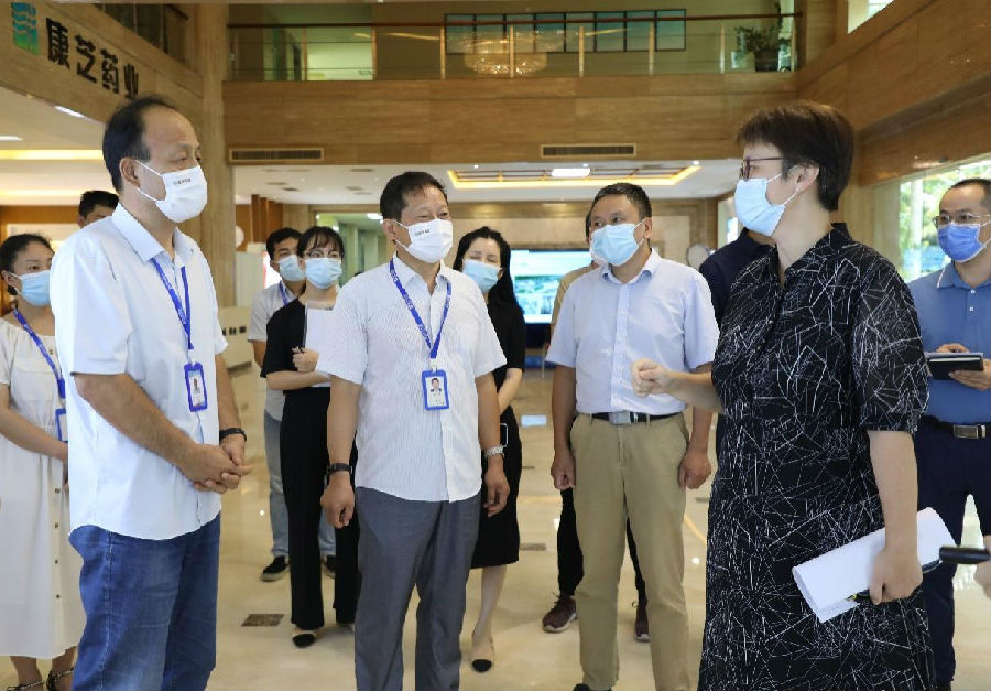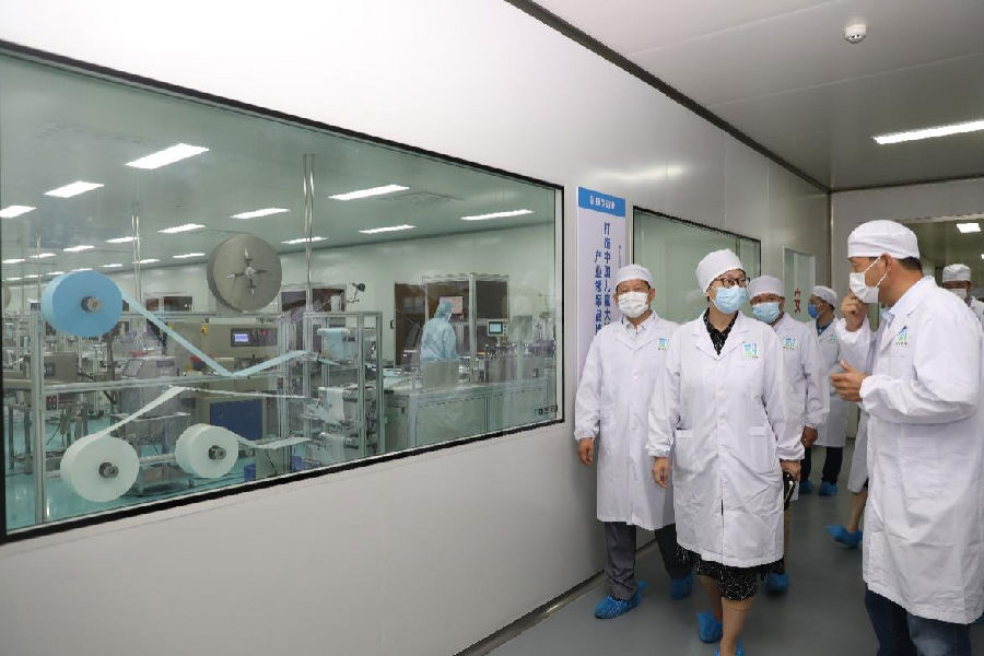 隨后,海南省藥監(jiān)局朱寧局長(zhǎng)一行在我司領(lǐng)導(dǎo)的陪同下,參觀了康芝藥業(yè)的醫(yī)用防護(hù)口罩生產(chǎn)車間,康芝藥業(yè)海南基地總經(jīng)理高洪常現(xiàn)場(chǎng)匯報(bào)了康芝藥業(yè)的口罩產(chǎn)品情況、海南(國(guó)際)醫(yī)療防護(hù)用品生產(chǎn)基地項(xiàng)目情況以及本次疫情期間康芝藥業(yè)踐行的“疫情防控與安全生產(chǎn)兩頭抓”的閉環(huán)生產(chǎn)管理辦法。朱寧局長(zhǎng)對(duì)康芝藥業(yè)在疫情期間積極履行社會(huì)責(zé)任、擴(kuò)充產(chǎn)能、申報(bào)創(chuàng)新產(chǎn)品與服務(wù)、服務(wù)疫情防控大局等方面給予了充分肯定。