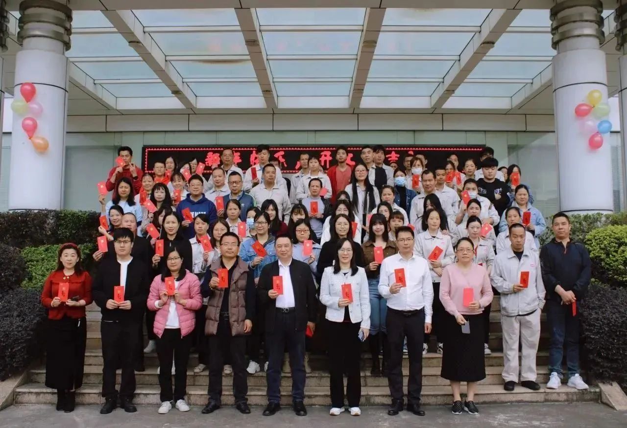 伴隨著現(xiàn)場(chǎng)喜慶的新年歌曲,大家自發(fā)地組成一條長(zhǎng)龍,向董事長(zhǎng)拜年,大家都收到了充滿祝福的開工利是。