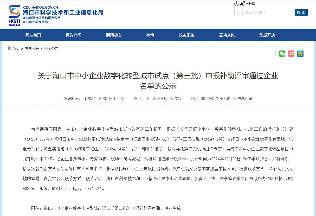 近日,??谑锌茖W(xué)技術(shù)和工業(yè)信息化局正式公布了《海口市中小企業(yè)數(shù)字化轉(zhuǎn)型城市試點(diǎn)(第三批)申報(bào)補(bǔ)助評(píng)審?fù)ㄟ^(guò)企業(yè)名單》。經(jīng)過(guò)企業(yè)自主申報(bào)、專(zhuān)家評(píng)審、現(xiàn)場(chǎng)測(cè)評(píng)等環(huán)節(jié),康芝藥業(yè)數(shù)字化轉(zhuǎn)型項(xiàng)目成功入選此次通過(guò)名單,這標(biāo)志著康芝藥業(yè)數(shù)字化轉(zhuǎn)型工作取得了重要的階段性進(jìn)展。