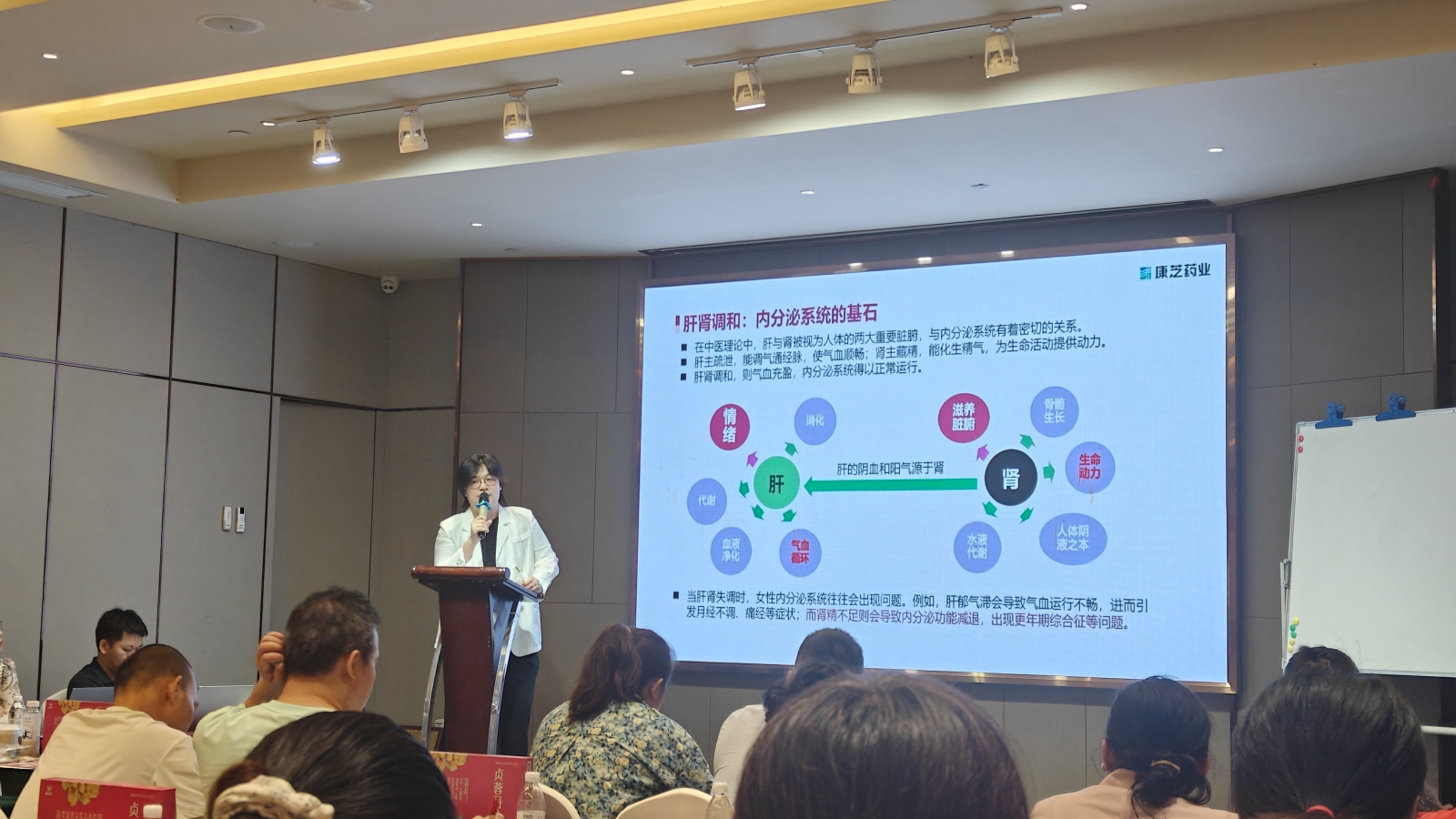 學(xué)術(shù)分享環(huán)節(jié),康芝藥業(yè)市場(chǎng)部產(chǎn)品經(jīng)理陳月發(fā)表了《肝腎同補(bǔ)氣血同調(diào) 女性健康重調(diào)理》主題報(bào)告。陳月經(jīng)理以女性?xún)?nèi)分泌問(wèn)題及診療現(xiàn)狀切入,對(duì)比中西醫(yī)理論與療法、分享臨床案例,深入闡釋了肝腎在女性氣血調(diào)理、健康維護(hù)中的關(guān)鍵作用,還講解了康芝藥業(yè)獨(dú)家明星產(chǎn)品坤柔®貞蓉丹合劑在肝腎同補(bǔ)、調(diào)治女性常見(jiàn)問(wèn)題中的應(yīng)用要點(diǎn)。報(bào)告從組方原理到臨床辨證施藥層層剖析,讓與會(huì)的基層醫(yī)藥衛(wèi)生工作者對(duì)中醫(yī)藥調(diào)理女性健康有了更清晰的認(rèn)知。