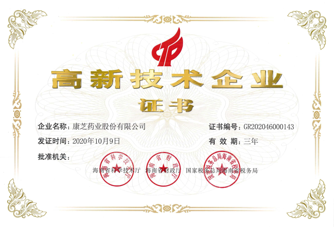 查看詳情近日,康芝藥業(yè)成功通過海南省2020年高新技術(shù)企業(yè)認(rèn)定名單,第五次成功認(rèn)證“高新技術(shù)企業(yè)”!